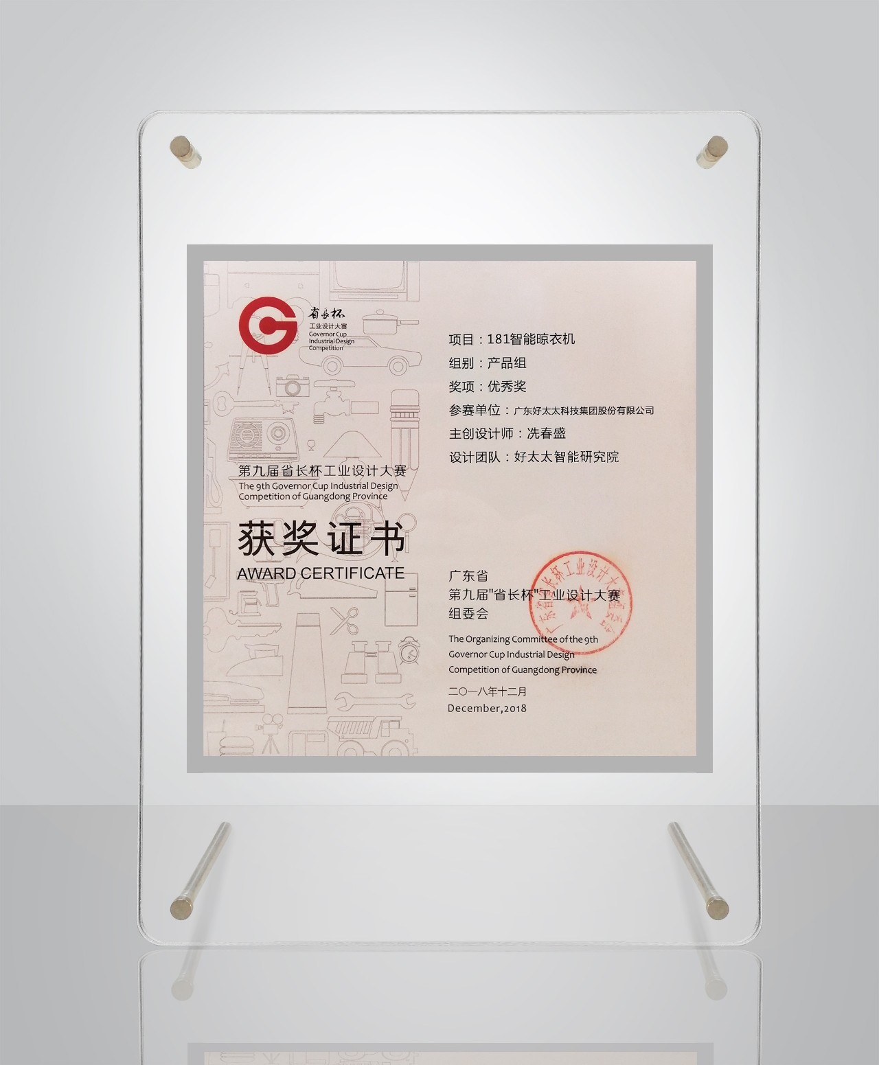 由广东省人民政府工业和信息化厅主办,广东省工业设计协会承办的第九届“省长杯”工业设计大赛经过约4个月的赛程已经结束。本届“省长杯”在全省21个地市,15个分赛区充分发动,从破纪录的32051件参赛作品中,选出513件决赛作品,并最终决出30件获奖作品和30个单项奖。其中,好博智尊系列GW-181凭借创新的产品工业设计脱颖而出,荣获“省长杯”工业设计大赛奖。