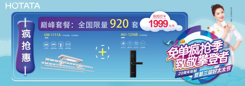 *疯抢惠:“好博晾衣机GW-1111A(不含安装,不含衣架) + 科徕尼智能锁A61-1256B(不含安装)”巅峰套餐,特价仅需1999元/套。