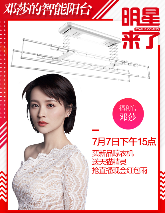 7月7日15:10—16:00,乐鱼官方旗舰店将邀请“超人妈妈”邓莎亲临直播间,与好博一起面对面互动,分享她的生活态度,亲测乐鱼与天猫精灵联合定制的新品声控晾衣机,还有3大惊喜福利等你来!