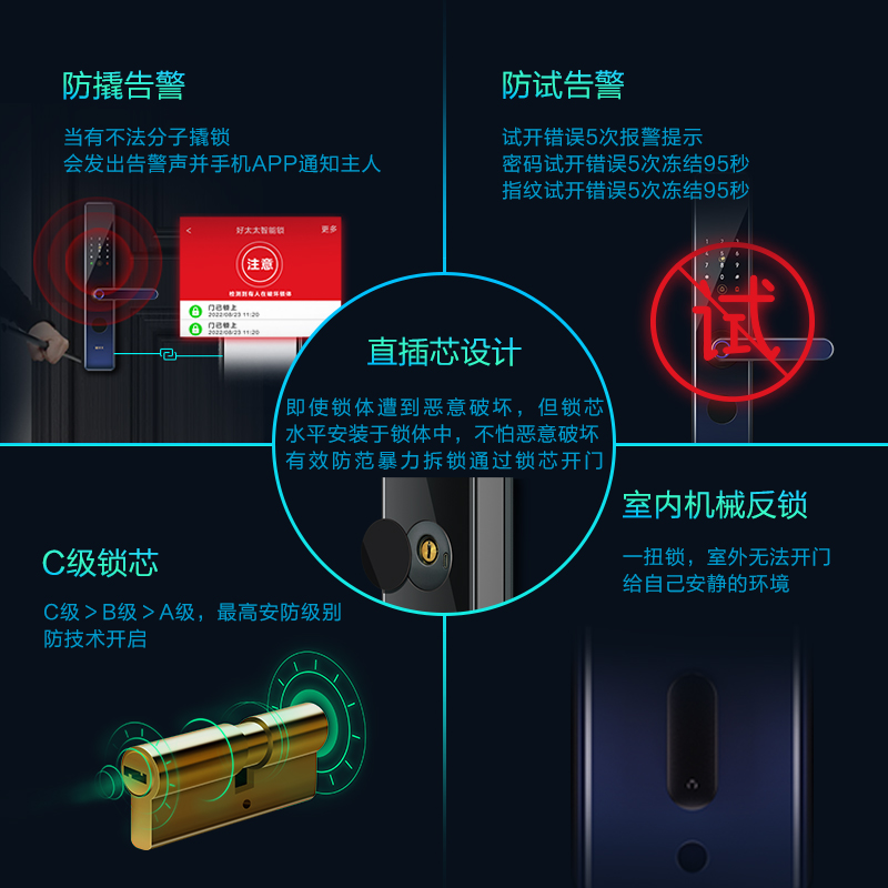 防宠物误开 | 防孩童误开 | 防猫眼开锁